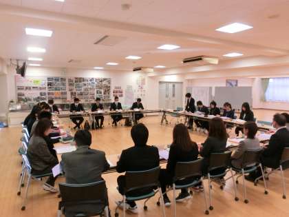 25日(木)、教育委員会事務局の訪問がありました。その中で、5時間目に3年3組が研究授業を行いました。議題は、「学級目標を達成するための計画を立てよう」です。前もって自分の考えを書いておいた学級ノートを見ながら、自分の意見を発表したり、友達の意見を聞いて折衷案を出したりして活発に議論が展開されました。その後、多目的室において全体会を行い、ご指導をいただきました。