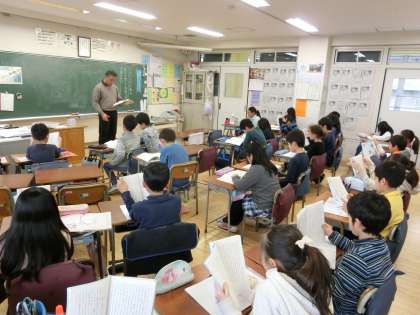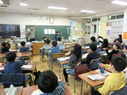 1日(木)の4時間目、4年1組は国語の授業でした。はじめに、新出漢字の練習をしました。本日の新出漢字は「残」「治」「熱」で、本日の漢字先生役の子どもたち3人が前に出てきました。順番に、漢字の「読み方、熟語、書き順」をみんなの前で発表しました。漢字練習の後は「じゃんけんの仕組み」という説明文の学習に入りました。「完璧読み」をめざし、子どもたちは集中して友達が読むのを聞いていました。読み間違えても「進んだよ。」と言える姿がありました。