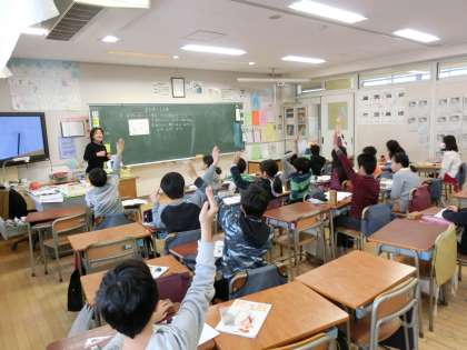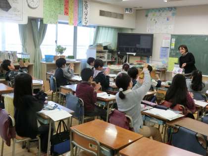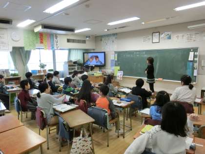 2日(金)の1時間目、4年生は算数の授業でした。習熟度別に「直方体と立方体」の学習をしました。4年2組の教室では、積み木を自分で操作しながら、面と辺の垂直や平行を見つけていました。面に垂直な辺はすぐに見つけられましたが、面に平行な辺となると少し考えていました。互いに考えを伝えあい、教えあう姿があり、「なるほど。」「そうか、わかった!」と納得することができました。