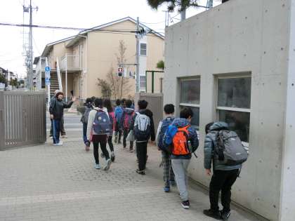 区内の小学校には「伝統工芸室」のある学校があります。今回、4年生はその伝統工芸室で「紙すき体験」に挑戦します。最初に体験したのは、2組です。2駅分電車に乗るために午前8時25分に学校を出発しました。保護者の皆様には、早朝よりお弁当の用意をありがとうございました。