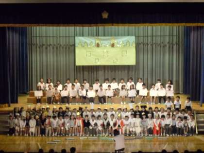 子どもが自分の思いを伝えようとする表現力をより高めることを目標に学習発表会を実施しています。今年度は音楽的表現を中心とした発表会です。