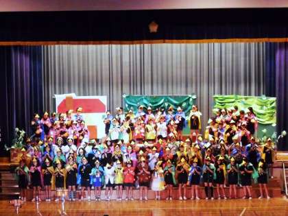 たまごの大好きな王様のお話です。鍵盤ハーモニカを吹きながら入場し、すてきな歌も大きな口を開けて歌うことができました。一年生のはじめての学習発表会。大成功でした!