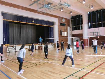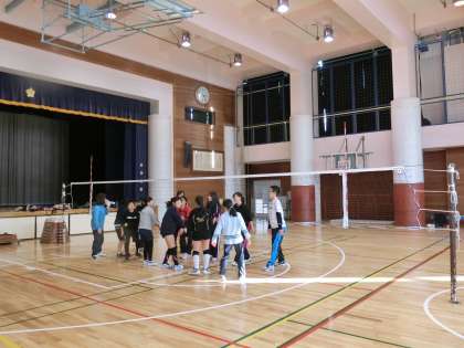 10日(土)の午後2時から、バレーボール教室が体育館で行われました。今回は、実践練習として、6年生チーム対先生チームでゲームをしました。ゲームを重ねていくうちに、6年生にこれまで以上の連帯感が生まれ、声が出るようになったり、ボールを何とかつなごうとしたりしていました。4年生と5年生は隣りのコートで、ゲームをして楽しみました。