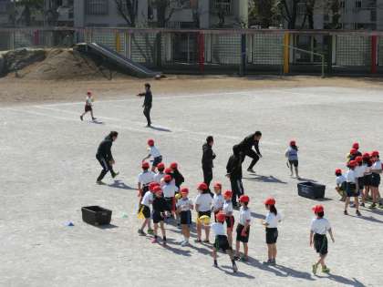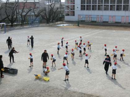 15日(木)、3年生はタグラグビー教室に参加しました。プロのラグビーチームから6名の方にお越しいただきました。ラグビーボールを初めて手にした子どもたちでしたが、次第に慣れていきました。体の両脇に着けた「タグ」を取られないように、フェイントをかけたり、体をくねらせたりしながら走りぬけていました。