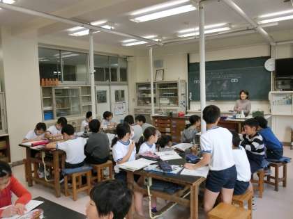 16日(金)の1・2時間目、4年2組は理科の授業でした。「もののあたたまり方」の単元で今回は「水のあたたまり方」について、予想をたて実験をしました。各班の結果を確認してから、自分の言葉でまとめを書いていました。
