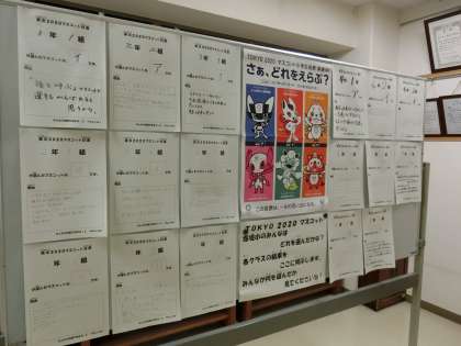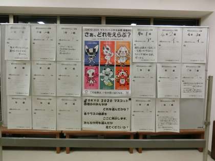 22日(木)は、東京2020大会マスコット投票の最終日です。本校では、3学期になってから、各学級で話し合いをしてきました。子どもたちはまず、それぞれのマスコットの性格や目的などをビデオを見ながら理解しました。次に、なぜそのマスコットにしたいのかの理由をはっきり述べながら、学級として1つのマスコットを選びました。赤小広場にあるホワイトボードには、各学級の結果が掲示されています。どの学級の選出理由もとても立派です。本校は16日に投票を終えていますが、28日の決定がとても楽しみです。