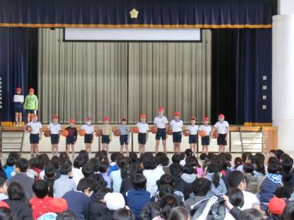 発表の方法には、実演して見せるクラブもありました。写真は、バスケットボールクラブ、科学クラブ、室内遊びクラブです。