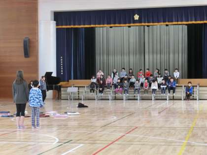4時間目は、5年1組のリハーサルでした。クラス紹介をする2人の練習をみんながやさしく見守っていました。担任の先生の指揮で2曲歌いました。曲の途中でソロパートがあり、ソロを担当する2人が伸びのある歌声を披露していました。