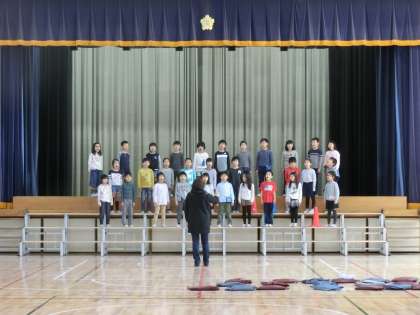 1日(木)の3時間目は、2年1組がリハーサルに臨みました。昨年度よりも1段高く上ることになったので、足元に気を付けながらステージに向かう姿がありました。担任の先生の指揮をよく見て歌うことができました。