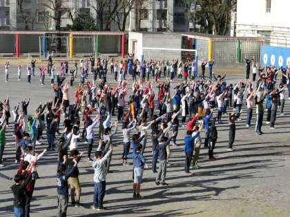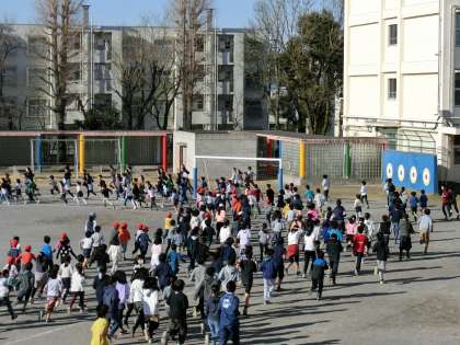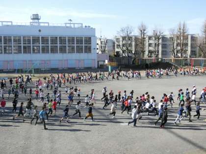2月2日から始まったマラソン月間は、2日(金)で最終日を迎えました。金曜日ということから「わくわくスポーツタイム」でマラソンをして締めくくりました。準備運動のあと、音楽に合わせて走りました。自分のペースで腕を後ろに引いて走ることができるようになりました。