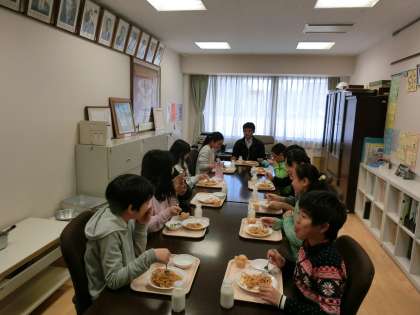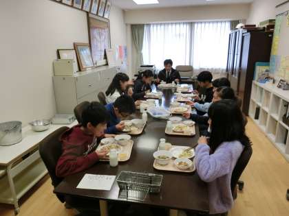 6年1組の子どもたちと校長先生との会食は、2日(金)で終わりました。少し照れたような表情をしながらも、楽しんで食事をしていました。