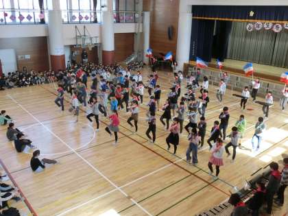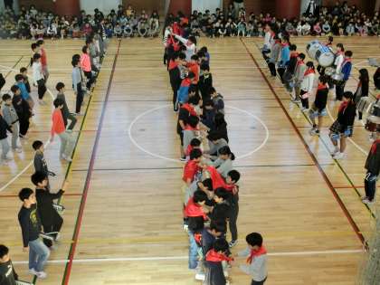 4時間目は、赤小パレードの引き継ぎ式を行いました。まず、6年生が「キリマンジャロ」「風をきって」の2曲を演奏しました。「僕たちの演奏する姿を目に焼き付けてください。」という言葉に49代目を立派に勤め上げた自信が伝わりました。演奏後は、いよいよ引き継ぎです。6年生の首に巻いていた赤いスカーフが同じ楽器を担当する5年生の首に巻かれていきました。5年生は、「今、自分たちにできる精一杯の演奏をします。」と力強く述べて、「風をきって」を初披露しました。50代目の立派な誕生でした。