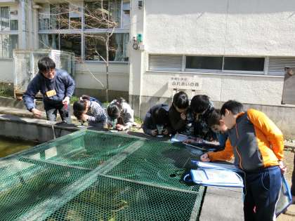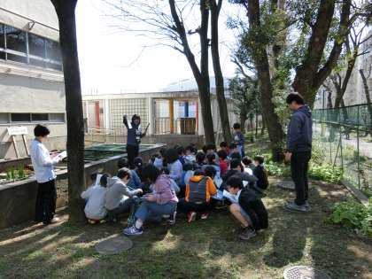 3年生 ビオトープ周辺で理科の学習 (3/14)