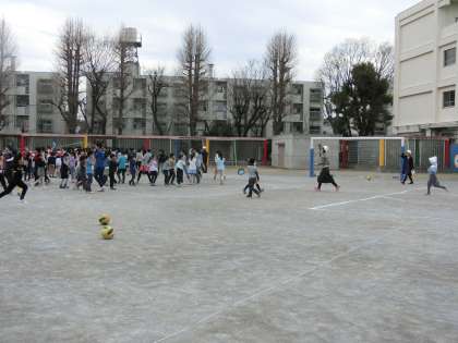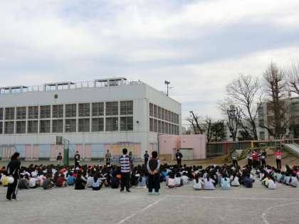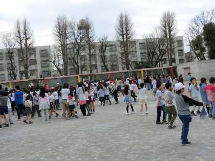 15日(木)の昼休みに避難訓練を実施しました。今回は事前の予告なしで行いました。多くの子どもたちが校庭で遊んでいる中、緊急放送が入りました。その場にしゃがんで放送を聞くことができました。校舎内にいた子どもたちは、防災頭巾を被ったり、ハンカチで口を押えたりしながら避難しました。