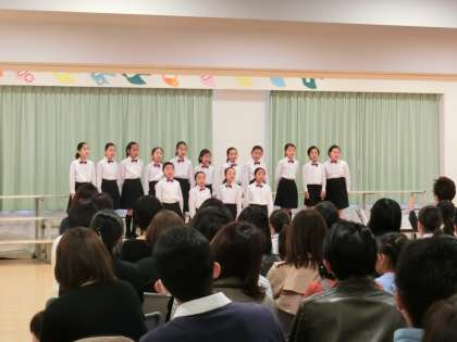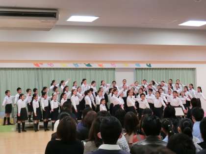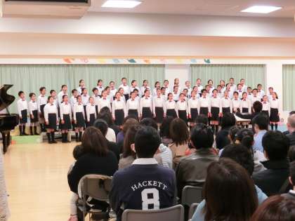 18日(日)、合唱団によるスプリングコンサートを開催しました。会場の多目的室には、たくさんの保護者、卒業生の皆様がお越しくださいました。オープニング曲は「ゆかいに歩けば」。はじめの言葉に続いて、全員合唱「リフレイン」、3年生による学年唱「ふじ山」へとプログラムが進みました。