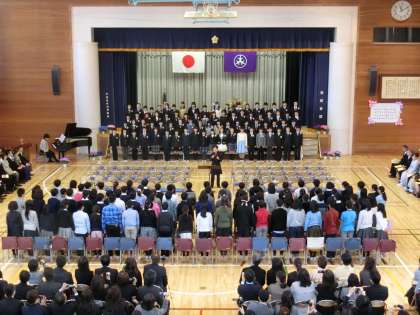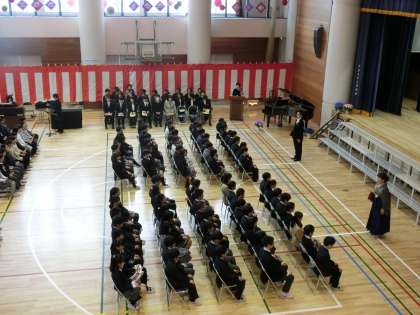 23日(金)、体育館において「第64回卒業式」が行われました。77名全員が参加して、立派な態度で卒業証書を受け取りました。在校生代表の5年生も入退場の演奏に、呼びかけにと活躍し、しっかりと伝統のバトンを受け継ぎました。