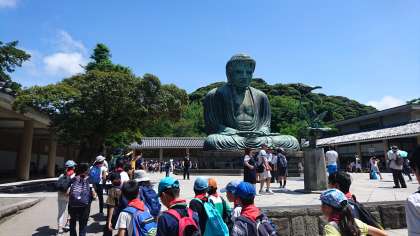 6年生が、鎌倉に遠足に行きました。高徳院から源氏山を経て、鶴岡八幡宮へと歩きました。地図と写真マップを見ながら、グループで行動しました。ハイキングコースは森の中。木々の間から時々顔を出す鎌倉の街や水平線。心地よい風と鳥のさえずり。リスにも会いました。事前の学習を通して、一人ひとりがテーマをもって遠足を楽しみました。