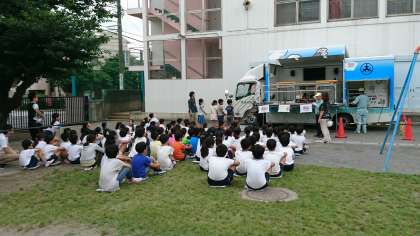 5年生が、起震車を使った訓練を行いました。地震を想定した全校での避難訓練に続いて実施しました。大きな揺れの中で身の安全を確保することの難しさを感じるとともに、いざというときの基本的な動き方を体験しました。