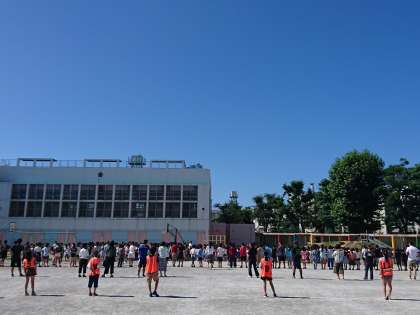 児童集会で「通りぬけじゃんけん」をしました。集会委員会の児童が、全校で楽しめる遊びを考え、事前の準備を進めてきました。遊び方やルールなどは、「集会わくわくだより」で事前に全学級に知らされます。夏空の下、校庭には大きな歓声が響き、全校のみんなで集会を楽しみました。