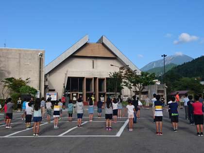 三日目。快晴の朝です。ほんのり冷たい風と目の前に広がる男体山をバックにした風景が、日光の朝を演出しています。朝の会では、心と体をほぐしました。代表児童の司会と言葉、体操係の児童のリードで朝の時間を有意義に過ごしました。