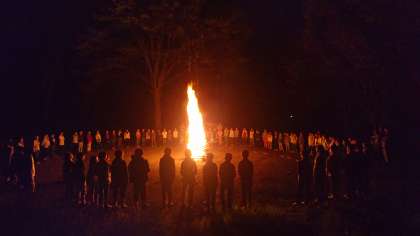 キャンプファイヤーをしました。大きな炎を囲んで、係の子どもたちのリードで、歌ったり踊ったりして楽しみました。補助員のみなさんが、子どもたちが楽しめるようにと、早い時間から準備を進めてくださいました。係の子どもたちのスムーズな運営と盛り上げるための演出。そのリードに応える子どもたち。思い出に残る時間になりました。