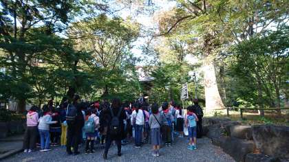 3年生が、社会科見学で区内巡りに行きました。始めに、九品仏浄真寺に行きました。広い敷地は、昔の奥沢城の跡だそうです。お寺の由来に触れながら、郷土のみなさんに親しまれている行事や、世田谷区の花「さぎそう」についても教えていただきました。