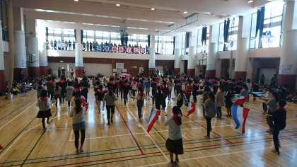 「6年生を送る会」の第二部で、6年生から5年生に、本校伝統の「赤小パレード」が引き継がれました。本校第50代の「赤小パレード」を担ってきた6年生が、この1か月間、5年生に演奏や動きを伝授してきました。赤小パレードは、トレードマークである赤いスカーフをつけて演奏します。はじめに、6年生がこの赤いスカーフをつけて演奏をしました。堂々とした、雄壮な演奏でした。その後、6年生がつけていたスカーフをはずし、5年生の一人ひとりに渡していきます。これが、伝統のバトンです。最後に、6年生からスカーフをつけてもらった5年生が「今の自分たちにできる精一杯の演奏をします。」と言って、力一杯の演奏をしました。その姿を、6年生が、優しくあたたかく見つめていました。そんな5年生と6年生に、1年生から4年生が大きな拍手をおくりました。赤堤小学校第51代「赤小パレード」が誕生した瞬間でした。本校の伝統が、こうして受け継がれていきます。