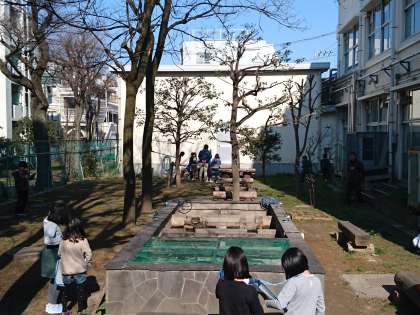 3年生は、校内にあるビオトープを使った学習をしています。この日も、専門家の講師の方の支援をいただいて、春を探しました。この活動で、今年度のビオトープでの学習は終了します。そして、現3年生から新年度の3年生(現2年生)に、ビオトープでの学習が引き継がれます。最後の観察を終えた3年生が、2年生に
