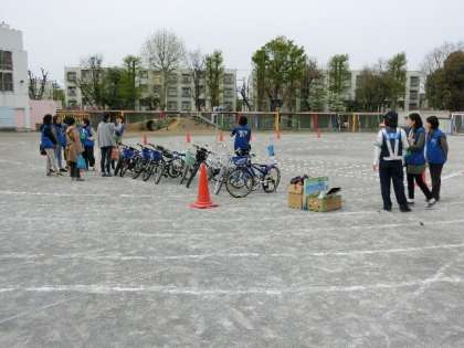 3年生の交通安全教室が、北沢警察署の方々にご来校いただき実施されました。PTAの方々が、警察署の担当者と連絡をしたり、打ち合わせをしたりしてくださいました。また、子どもたちが練習できるように多くの方々が自転車を貸してくださいました。今日のことを生かして、いつでも100点満点で交通ルールを守り、安全に心がけていきましょう。