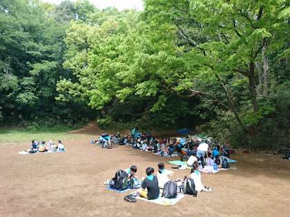 お弁当の時間です。午後の遊びに備えて、しっかりと腹ごしらえです。池に落ちたり、泥んこになったりしながら、存分に楽しんでいます。
