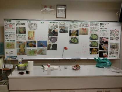 「いいにおいがする!」「給食が楽しみ」と1年生の声がろうかで聞こえました。でも、それは、給食室からではなく家庭科室からのにおいでした。調理しているのは、春キャベツを使った炒め物のです。校長先生、副校長先生、担任の先生たちが招待され、春の香を楽しんでもらいました。片付けもしっかり協力してできました。