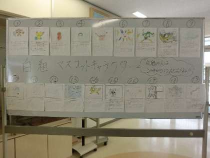 運動会に向けて、子どもたちの気持ちも徐々に高まってきています。練習にも熱が入っています。そして、応援にも。今年の応援マスコットの投票が始まりました。休み時間になると、アンケートの紙を握りしめた子どもたちで、掲示板の前が人だかりになります。紅白とも力作ぞろいです。お互いを応援し合い、たたえ合う気持ちを育てていきたいですね。