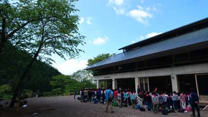 閉室式です。ふじやまビレジの皆さんに、感謝の気持ちをこめてごあいさつをしました。ビレジの職員の方から「3日間、いろいろな場面で、こんにちは、ありがとうございますというあいさつを、たくさんしてくれました。」という言葉をいただきました。部屋の片付けも、協力してできました。