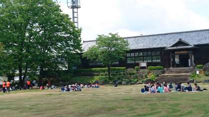 村めぐりの終点「川場村歴史民俗資料館」です。明治時代の小学校の建物を前に、お弁当をいただきました。川場村の観光の発祥地も見学しました。「ごちそうさま。」の後は、バスに乗って世田谷区を目指します。