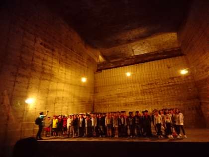 大谷石でできたステージで、全員で合唱をしました。特別に許可をいただいて、みんなで大谷石に囲まれたステージでの歌声の響きを味わいました。多くのお客様が足を止めて、子どもたちの歌声を聞いてくださいました。