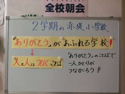 元気な顔とともに子どもたちが登校してきました。始業式では、1学期の振り返りをもとに2学期の目標を3人の5年生が代表として発表してくれました。校長先生は、「ありがとうには、人と人のつながりがあります。」というお話をされました。だから、赤堤小学校の2学期の目標は「ありがとうあふれる学校」です。