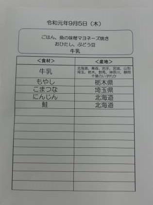 9月5日(木)の食材産地について