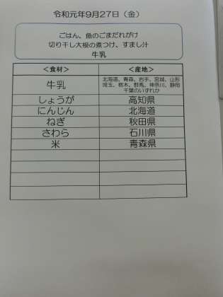 9月27日(金)の食材産地について
