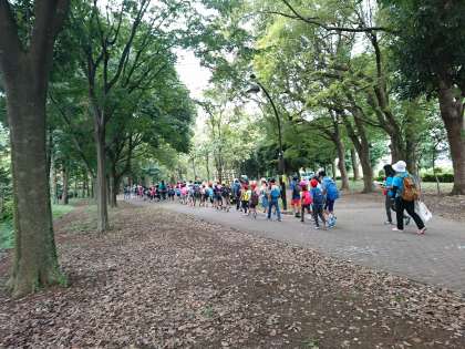 1年生から6年生までの異学年で構成された班で、芦花公園まで歩きます。約2.5キロメートルの道のりを、声を掛け合いながら歩きました。公園の中は、秋の風が吹いていて、とても過ごしやすかったです。
