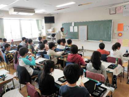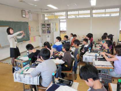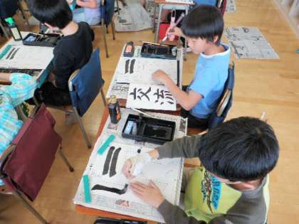 今日の授業は書写でした。筆の持ち方から書く姿勢まで丁寧に指導していました。子どもたちは横画、縦画、折れ、はね、右払い、左払い、曲がり、反りと一つ一つ確かめながら、書いていました。次時は「交流」を実際に書いてみます。どんな字が書けるか楽しみです。