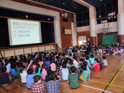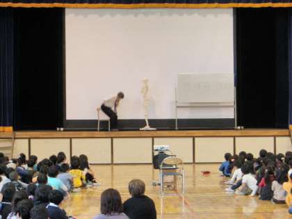 今日のわくわくスポーツタイムは、保護者会で話した「赤堤っ子の健康な生活」について、子どもたちに話しました。また、人間の骨格模型を使って、椅子に姿勢よく座り、腹横筋を自然に鍛えるようにも話しました。健康的な生活を送ることが学力向上にも繋がります。ご家庭でもよろしくご指導ください。