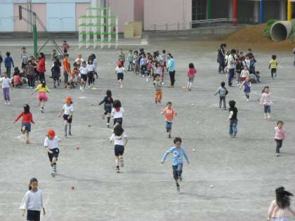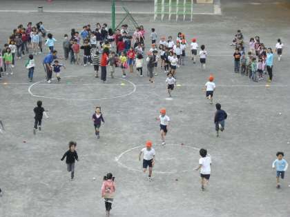 2回目のわくわくスポーツタイムは、校庭で全身コーディネーショントレーニングをしました。ゆっくり走ったりスキップをしたりサイドステップをしたりしました。いろいろな走り方やステップを踏むことにより、自分の身体を自由に扱えるようにしていきます。
