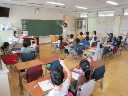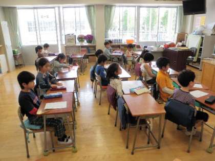 今日の授業は、漢字の学習でした。2年生になって、6つの新出漢字を学習しました。先生から「もうすぐ時間割も漢字で書けますね。」の一声に子どもたちはうれしそうに学習に取り組んでいました。縦線、横線の書き方を確かめながらの丁寧な漢字指導でした。また、授業の合間に合間に、いい姿勢の子どもをほめながら「がいこつさんの姿勢は、大丈夫ですか。」(わくわくスポーツタイムでの姿勢指導)と姿勢の確認をしっかり行っていました。