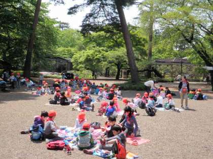 いよいよグループごとの見学の始まりです。担任の先生に「行ってきます。」を言って出掛けて行きました。1時間ぐらい見学した後、楽しみにしていたお弁当です。どの子も友達と一緒にうれしそうに食べていました。子どもたちは、帰りはさすがに疲れたようでしたが、がんばってどの子も遅れず帰ってくることができました。