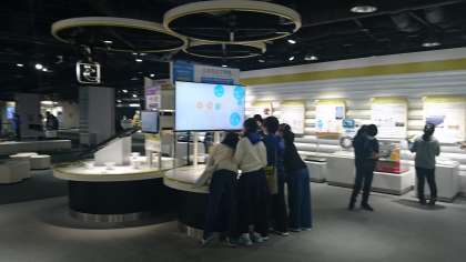 東芝未来科学館の見学です。グループごとに、色々なブースを見学しました。最先端の技術、未来の技術、電化製品の進化など、過去と現在、そして未来の生活の変化について学びました。