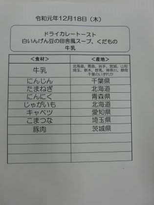 12月18日〈水)の食材産地について