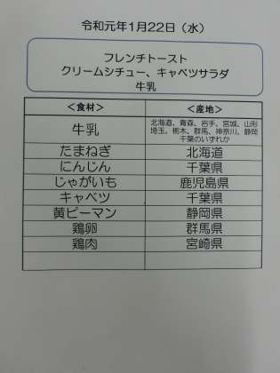 1月22日(水)の食材産地について