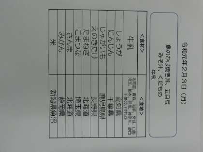 2月3日(月)の食材産地について