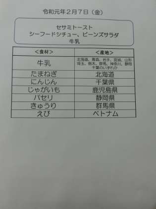 2月7日(金)の食材産地について