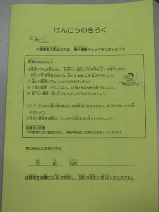 子どもたちが健康に安全にすごせるように、学校では様々な取り組みを行っています。分散登校から自分の健康を意識できるよう、「けんこうのきろく」を作成しました。ご家庭で記入し登校する際には、毎回持参してください。